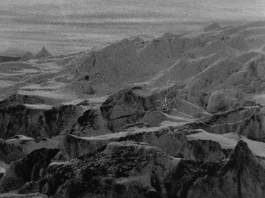 Here, the aging film’s scarring and damage manifest as a sympathetic magic which parallels that of the landscape it holds. Rather than the temporality of this demise feeling inescapably horrific, Stupart opens up the potential of transmogrification, the melted remains of the polar ice caps entering into traumatized bodies in the form of nano-particles, as a form of time travel, with the glaciers becoming a part of us, merging past, present, and future.